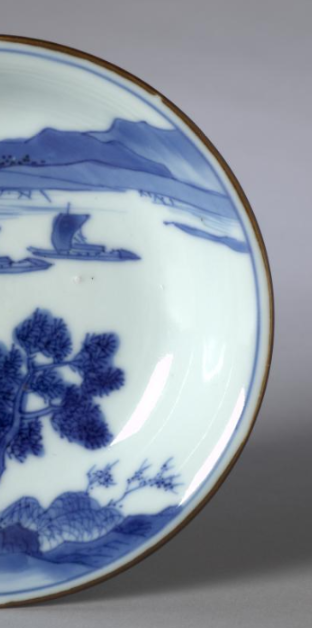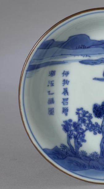 清代青花山水纹题诗盘