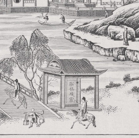 在清代,人们常将木版画山水楼阁人物图装裱后, 悬挂在书房、客厅、卧室等房间。 书房中悬挂此类木版画, 能营造出宁静雅致的氛围,契合文人墨客追求的清幽意境, 助于激发创作灵感 ;挂于客厅,则彰显主人的文化品位与艺术修养, 美化家居环境。