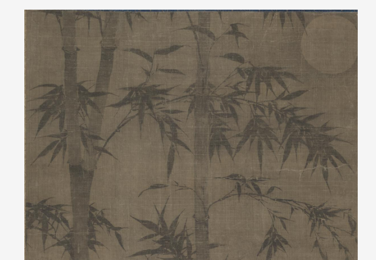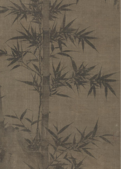 画面绘数竿修竹,新篁挺拔,竹叶葱郁,竹下有石。以水墨绘就,竹枝竹叶姿态灵动,似沐春风,展现春日竹林生机,体现元代文人画中竹的高洁意趣,借竹石传达春日清逸、蓬勃之韵