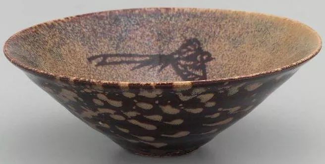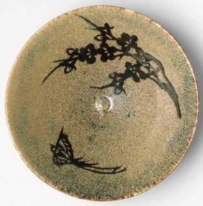 装饰细节:以酱釉为底色,釉色古朴深沉,呈现出棕褐色调,釉面质感温润,有一定的光泽度,且带有自然的开片纹理,增添了岁月的韵味。盏内以黑彩绘制梅花纹,梅花枝干虬曲,形态生动,梅花点缀其上,或含苞或绽放,寥寥数笔却将梅花的神韵展现得淋漓尽致。部分瓷盏还会搭配蝴蝶等纹饰,增加画面的灵动之感。这些纹饰绘制随意自然,却又恰到好处,体现了吉州窑瓷器装饰的独特艺术风格。胎体呈灰白色,质地较为细腻,圈足处可见未施满釉的痕迹,是吉州窑瓷器常见的特征。