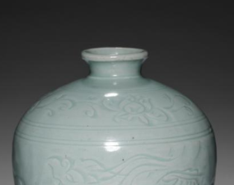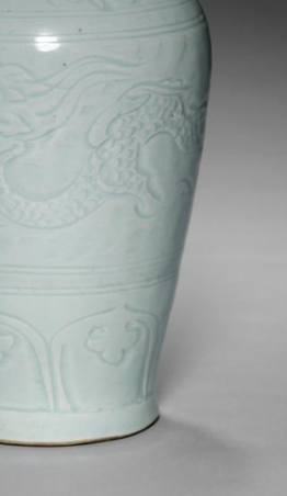 元代青白釉刻花龙纹梅瓶
