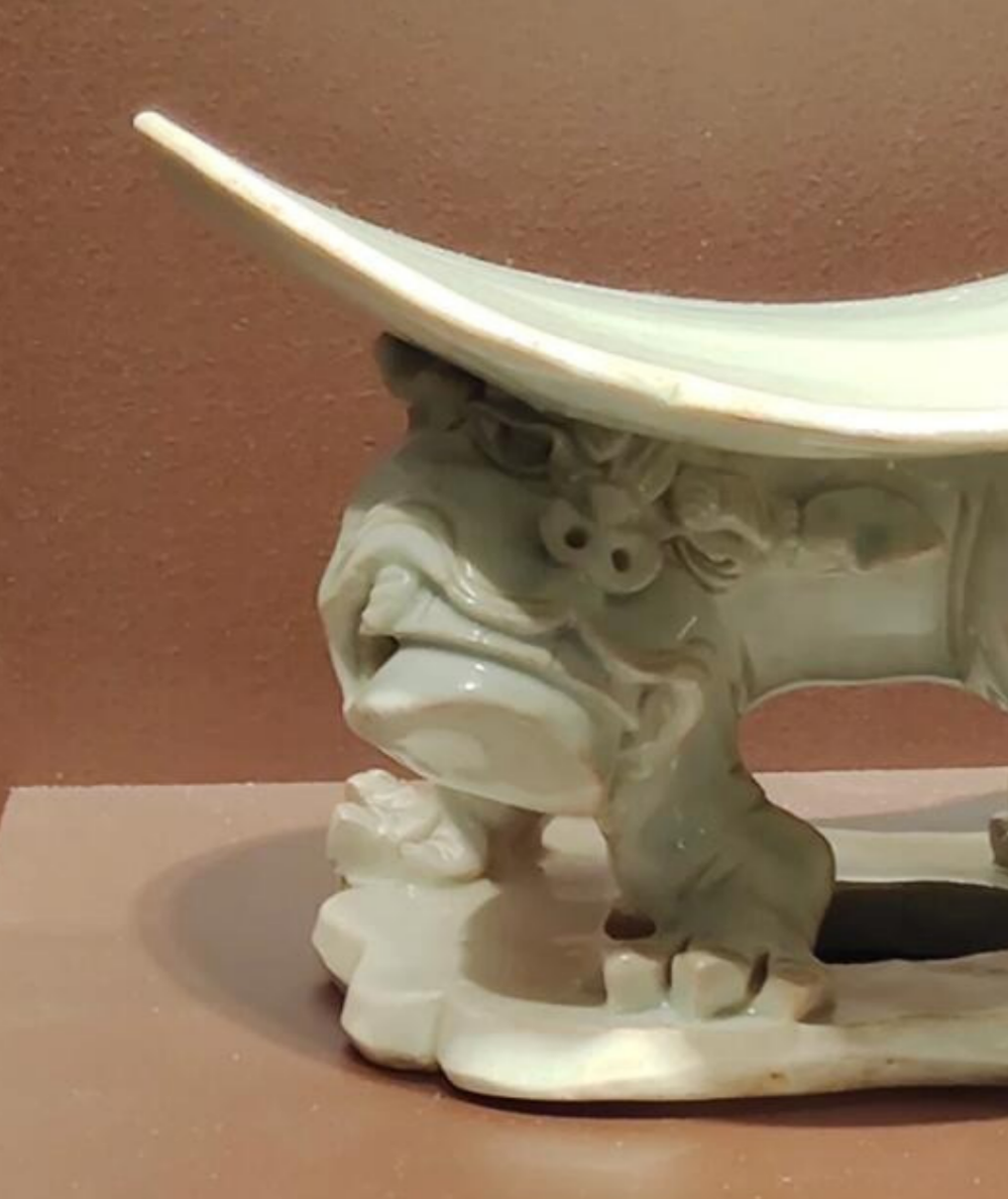 宋代景德镇窑青白釉狮雕瓷枕