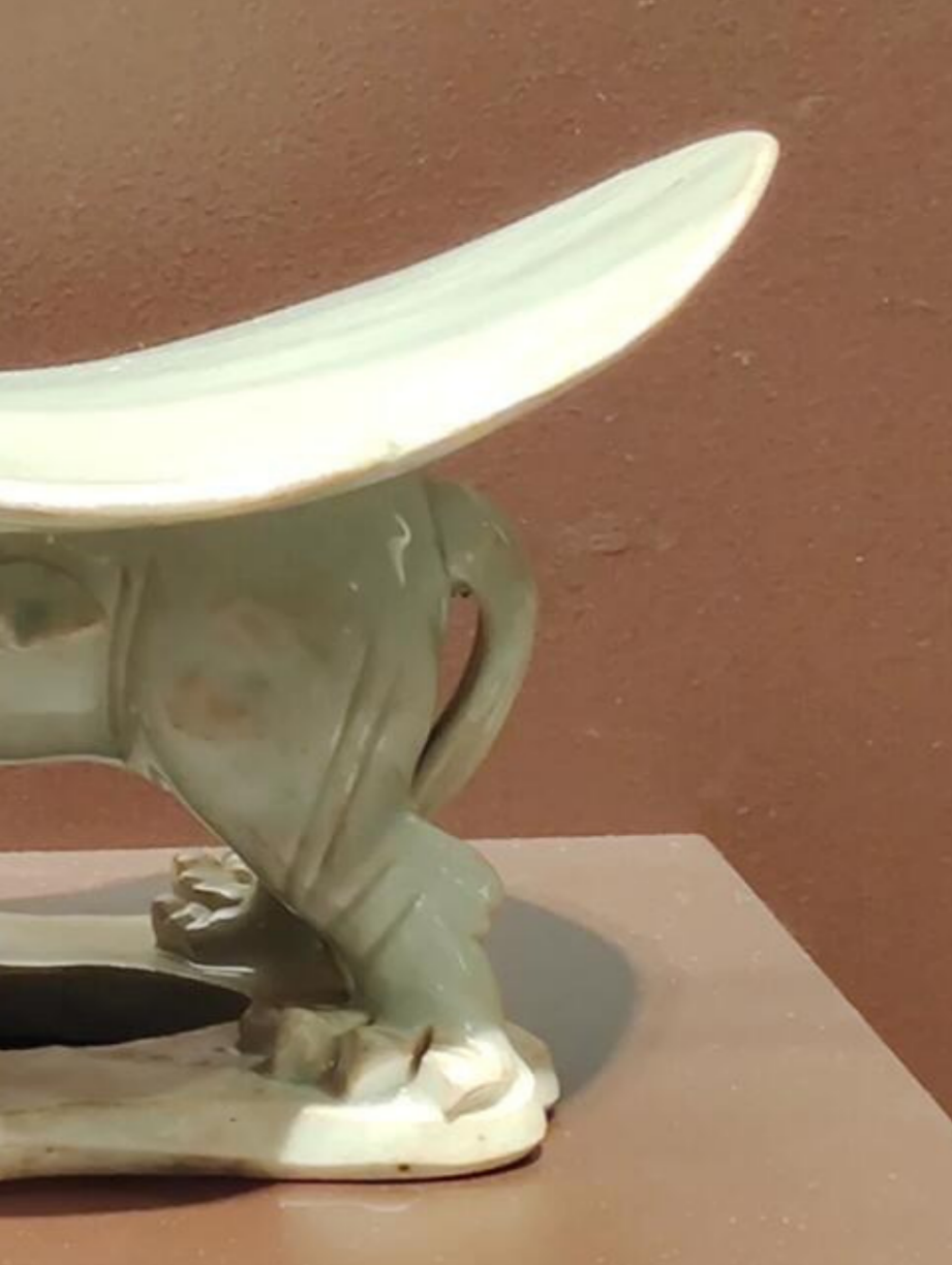 整体造型:以狮子为底座支撑,上面是弧形的枕面。整体造型设计巧妙,兼具实用性与艺术性。