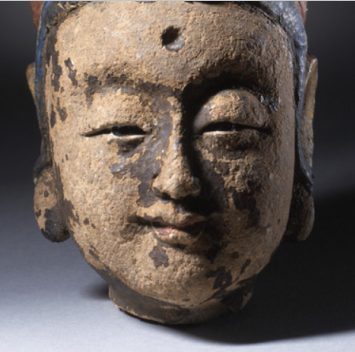 彩绘石雕佛头像