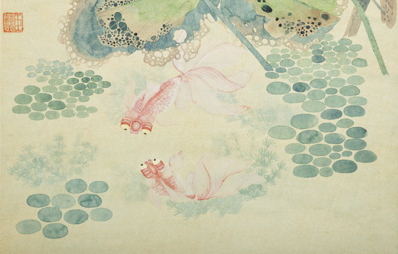 在清代,人们注重室内环境的营造,书画作品是重要的装饰元素。荷花金鱼图轴寓意美好,荷花象征高洁,金鱼代表富足吉祥,将其悬挂于客厅、书房、卧室等空间, 可美化环境,增添文化艺术氛围,彰显主人的审美情趣 。