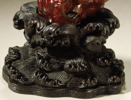 本品规格为琥珀雕像12.7 x 6.4 x 5.1 厘米,底座5.1 x 8.9 x 5.7 厘米。雕刻仙人题材,仙人常象征长寿、吉祥,蕴含祈福纳祥的文化内涵,反映古代对神仙文化、美好生活的向往与追求 。配木雕海浪形底座,雕刻精细,海浪形态逼真,与琥珀雕像相得益彰,既增添稳定性,又丰富视觉层次,整体更具艺术观赏性 。