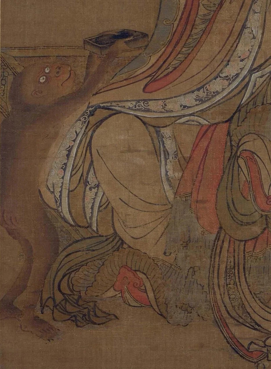 国内收购:清末民初,社会秩序混乱,许多原本收藏在私人手中或庙宇等场所的文物开始流散。这幅《猴侍水星神图》可能原属于某私人藏家或者庙宇,在当时混乱的文物交易环境下,被文物贩子低价收购。