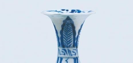 唐代司空图诗曰:玉壶买春,赏雨茆屋;座中佳士,左右修竹。波士顿馆藏的是26.5厘米是元代典型玉壶春瓶造型:束颈、垂腹、外撇圈足,整体呈优美的S形曲线,比宋代同类器型更显稳重。胎体特征方面提到“白中闪青”,采用元代特有的二元配方,呈现“鸭蛋青”釉色这些都是鉴别元代青花的重要特征。纹饰部分是这件作品的亮点。从颈部的芭蕉纹、回纹,到腹部的仰莲瓣纹,最突出的是三组云肩纹构成的主图案所谓“云肩水波莲花纹”应指云肩开光内绘制的水波纹与莲花组合,这种纹饰布局具有典型元代风格。
