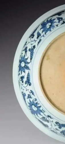 青花牡丹唐草纹盘,盘心绘牡丹主题,辅以卷草纹(唐草纹),青花发色浓艳,白釉温润。此类纹样是元代青花经典组合,体现草原文化与中原审美的融合,直径达38.3cm,元代牡丹纹饱满层叠,卷草纹繁密灵动;明代宣德时期纹饰更工整,出现蓝地白花工艺。