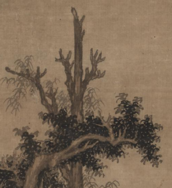 本品规格为85.5 x 42.5 厘米。近景绘有坡石、树木,树木形态古朴,枝干交错,树叶以点染、勾勒结合呈现;中景是开阔江面,江面上有舟船,船上有人物活动,增添生活意趣;远景为连绵山峦,以淡墨层层皴染,山峦上点缀树木,营造悠远空间感 。
