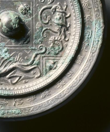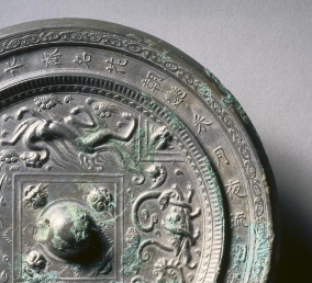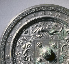 本品规格为直径19.8厘米,厚度1.5厘米。 镜背分 三区(内区、中区、外区 ),内区饰 高浮雕四神(青龙、白虎、朱雀、玄武 ),中区饰 环状铭文,外区饰 几何纹,形成 “四神镇守四方,铭文祈福,几何为界” 格局,呼应隋代 “五行五方” 学说(青龙东、白虎西、朱雀南、玄武北 )。