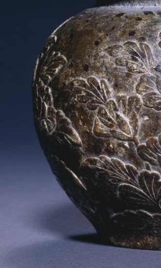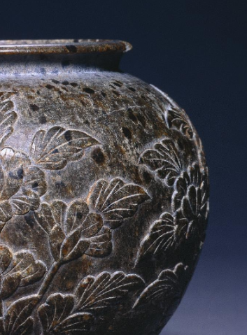 本品直径13.3 厘米。呈圆润罐形,敛口、鼓腹、收底,石质基底因岁月呈现古朴色泽,带自然斑驳纹理,尽显历史厚重。器身浮雕牡丹纹,花瓣层叠、叶片舒展,雕刻线条流畅,立体感强。