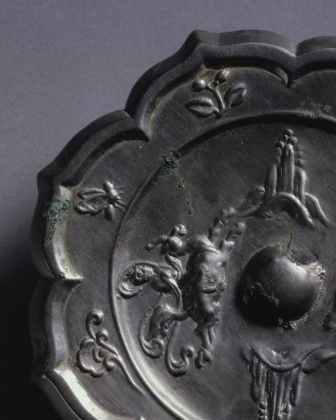唐代青铜菱花形仙人花卉纹镜