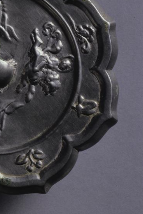 本品规格为直径12.2厘米,厚度0.8厘米。采用 高浮雕工艺,仙人(骑兽仙人、持物仙人 )形态 生动写实(衣饰飘带、神兽动态清晰 ),环绕镜钮遨游,尽显 “唐代神仙” 的超凡脱俗。饰 花卉纹(莲花、仙草 ),以 线刻 + 浮雕 结合(花卉浮雕饱满,藤蔓线刻流畅 ),形成 “满饰缠绕” 效果,传递 “唐代庭院花卉繁茂,神仙隐居其间” 的世俗仙境。菱花形边缘与 花瓣纹 完美融合(花瓣与花卉呼应 ),强化 “花形镜” 审美,体现唐代 “尚繁花,重升仙” 的风格。