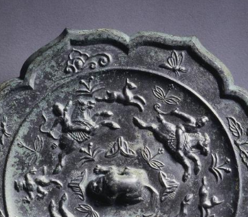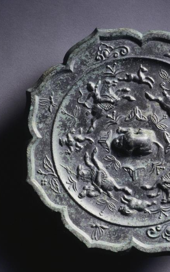 唐代青铜骑马狩猎纹菱花镜