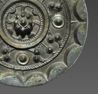 本品规格为直径10吗,厚度1.2厘米。整体呈圆形,中央设半球形镜钮,符合西汉铜镜常规造型,方便手持或悬挂照面。因岁月侵蚀,表面覆盖绿锈,显古朴厚重,见证历史沧桑 。以镜钮为中心,布局层次分明。最外层是连弧纹,线条流畅,呈花瓣状向外展开,增添灵动与韵律;中间层分布乳钉纹,乳钉大小错落、排列规整,与连弧纹搭配, 形成丰富视觉层次。乳钉纹象征祥瑞、稳固,连弧纹寓意圆满、和谐,体现西汉对美好寓意的追求。