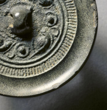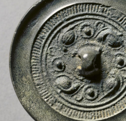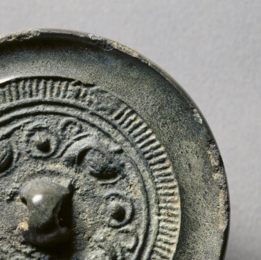 本品规格为直径6.2厘米,厚度1厘米。整体为圆形,中央是半球形镜钮,为西汉铜镜常见造型,便于手持照面。因岁月侵蚀,表面有斑驳锈迹与包浆,显古朴厚重, 留存历史痕迹 。以镜钮为中心,布局是连弧状涡纹,线条流畅自然,似涡旋形态,富有动感韵律;涡纹围绕镜钮分布, 边缘有连弧纹装饰,与涡纹呼应,形成层次简洁但独特的视觉效果,体现西汉对自然形态艺术化的审美。