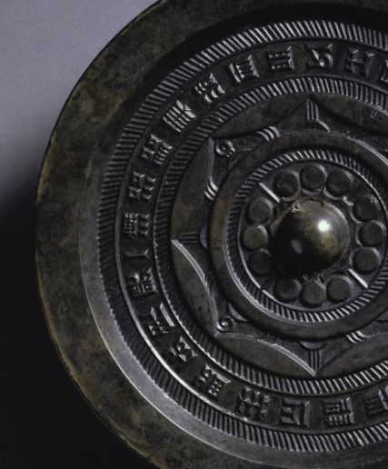 本品规格为直径14.9厘米,厚度1.1厘米。整体呈圆形,寓意团圆、圆满。 铜镜中央设有半球形镜钮,方便使用者手持或系绳悬挂。历经漫长岁月, 铜镜表面形成了古朴的色泽,部分区域带有锈迹和包浆,尽显历史的沧桑感。以镜钮为中心,有一圈或多圈连珠纹环绕。连珠纹由一个个小圆珠排列而成, 如同串联的珍珠,规整而有序,为铜镜增添了精致感和韵律美。这些连珠纹不仅具有装饰性, 在古代文化中还可能象征着星辰、财富等寓意。