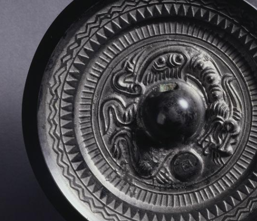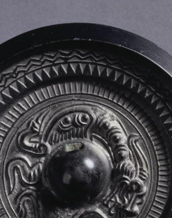 本品规格为直径9.9厘米,厚度1厘米。以镜钮为中心,主体纹饰为单龙纹。龙的造型生动,身体蜿蜒曲折,线条流畅且富有张力,龙的头部雕刻细致,龙眼、龙须、龙角等清晰可辨,展现出西晋时期工匠对龙这一神兽形象的独特理解和精湛的雕刻技艺 。龙纹周围环绕着几何形辅助纹饰,如锯齿纹、弦纹等,这些辅助纹饰与单龙纹相互映衬,丰富了镜背的图案层次,使整体布局更加规整、和谐,体现了西晋时期对对称美和装饰性的追求。