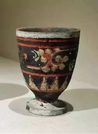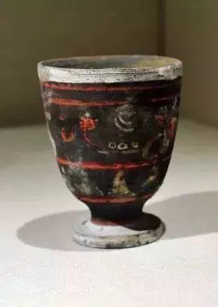 图案色彩:色彩方面,以黑色和红色作为主色调,黑色沉稳庄重,红色鲜艳醒目,两者相互映衬,极具视觉冲击力。同时,陶杯上还可能存在少量其他色彩的点缀,如白色、黄色等,进一步丰富了图案的层次感和表现力。图案内容丰富,从已知信息推测,其中包含有类似花卉、几何形状等纹饰,可能还有一些具有象征意义的图案。这些图案布局合理,在杯身表面形成了富有节奏感和韵律感的装饰效果,反映出当时工匠高超的绘画技艺和审美水准。此外,图案的绘制方式精细,线条流畅,部分线条可能还运用了勾勒和填色等不同手法,使得图案更加生动立体。