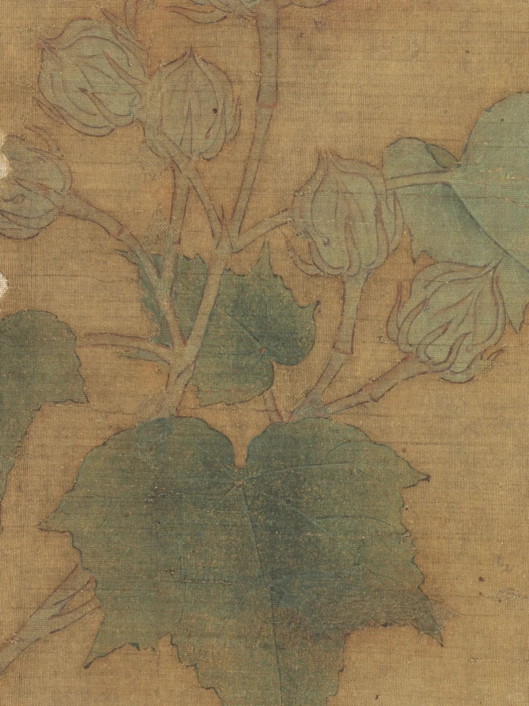 绘画技法:采用工笔设色的技法,用笔精细入微,线条流畅而富有弹性,勾勒出花瓣和叶片的轮廓。设色淡雅细腻,通过色彩的深浅变化表现出花朵的立体感和层次感,如红芙蓉的花瓣通过粉色的浓淡过渡,营造出晶莹剔透的质感;白芙蓉则通过白粉的渲染,展现出花朵的纯洁之美。整幅作品设色均匀,色调和谐,体现了南宋花鸟画在色彩运用上的高超技巧 。