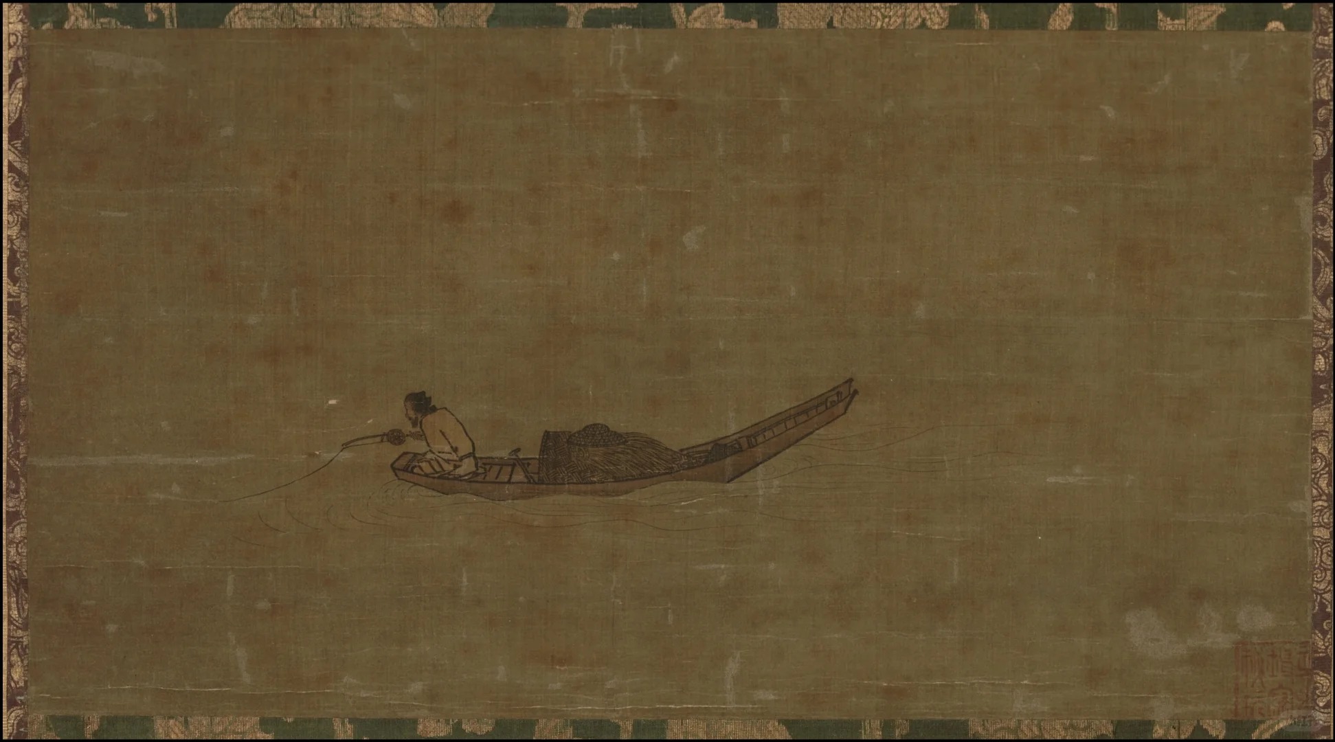 清末至民国年间,中国陷入内忧外患的困境,文物保护体系不完善,文物市场混乱。《寒江独钓图》可能原属于国内私人藏家,由于战乱、经济困难等因素,藏家选择出售该画。文物贩子或外国收藏者趁机购得,通过当时管理混乱的边境和文物交易渠道,将其带到日本,最终被东京国立博物馆收藏。