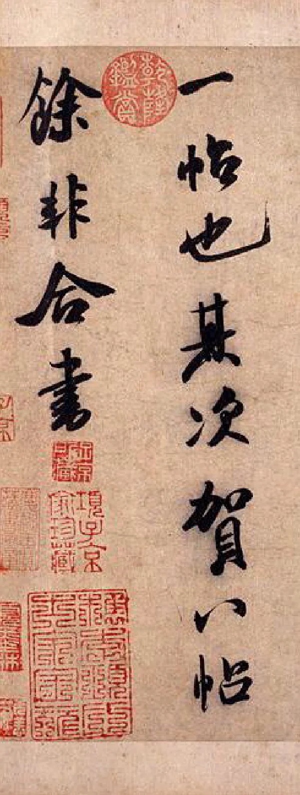 钤印题跋:帖上钤有诸多历代收藏印章,这些印章见证了作品在历史上的流传轨迹。如 “宣和”“绍兴” 等印章,反映出该帖曾被宫廷收藏;还有其他私人藏家的印章,彰显了其在不同时期受到的珍视。虽然没有明显的题跋内容,但钤印信息丰富了作品的文化内涵和流传脉络。