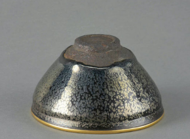 建窑是宋代名窑之一,以烧制黑釉茶碗闻名,其产品因含铁高的原料做胎,胎色深黑坚硬,有“铁胎”之称,胎体厚实坚致,呈黑灰色、紫黑色,胎质粗糙坚硬,露胎处色沉而无光;在宋代,油滴盏和兔毫盏一样,都是备受珍视的饮茶用具,不仅中国的达官贵人喜用它来斗茶,也受到酷嗜茶道的日本人的青睐