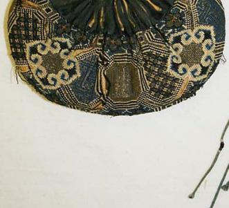 丝织品采用天然染料(红花、苏木、靛青等),经科学重建可复现25种色谱,如秋香色、杏色,反映清中期江南染织工艺的高水平宫廷丝织品兼具实用与礼仪,如椅垫坐垫套需保持座面平整以维护仪态^[注]^,而荷包、龙袍则通过纹样强化身份——慈禧龙袍绣“十二章”纹,本仅限帝王使用,凸显其僭越地位