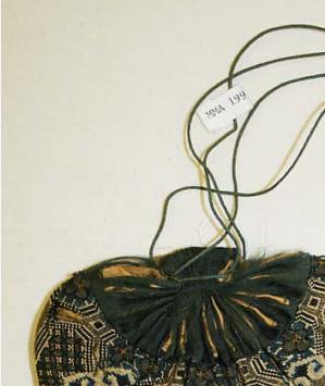 荷包作为随身饰物,是清代宫廷女性(如慈禧太后、容妃)的常用品,尺寸小巧(长约10–15厘米),常以丝绸为底,采用平金绣、缂丝等技法,绣制蝙蝠、缠枝莲、云鹤等纹样,象征“福寿安康”。内衬填充香料或珍物,边缘饰金线滚边,颜色以明黄、靛蓝为主,体现等级制度出土荷包多因墓葬环境破损,需经多年修复才可展出,例如清东陵容妃园寝所出荷包,经8年科学修复还原其金线细节与色彩层次