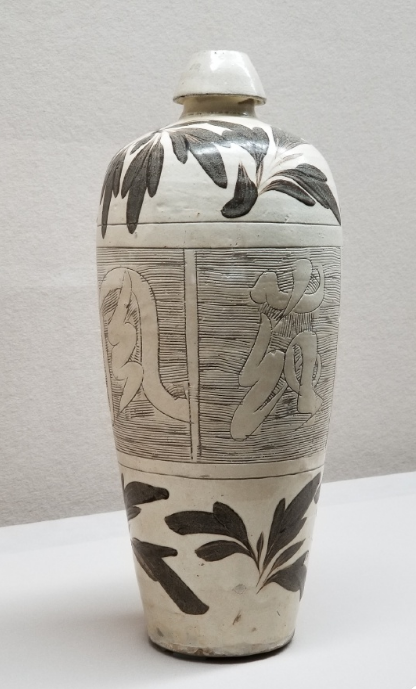 此梅瓶不仅是实用酒器,更是金代民俗与文人精神的物质载体。它将诗书画印融入陶瓷,以极简黑白诠释自然哲学,推动了后世青花瓷等彩绘瓷器的发展。其民窑背景更凸显了古代工匠的创造力,堪称“粗瓷细作”的典范。器物上的文字与纹饰为研究宋金元时期社会生活、商业竞争(如酒肆广告)及文化交流提供了实物佐证