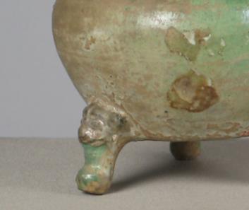 该香炉为明代宗教祭祀与日常焚香的重要器物,广泛用于宫廷太庙祭祀、士大夫书房焚香及民间祠堂礼佛等场景,是明代 “香文化” 盛行的实物见证。从历史价值来看,其绿釉工艺继承了元代绿釉的烧制技术,并在釉料配方与施釉工艺上进一步改进,为清代绿釉器物的发展奠定了基础;同时,器物的造型与装饰风格,反映了明代 “重礼器、尚简约” 的社会审美取向,是研究明代陶瓷工艺、宗教文化与社会生活的重要实物资料。
