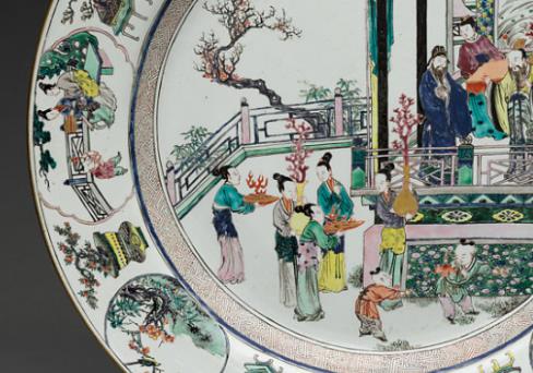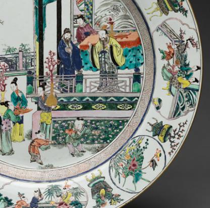 清雍正时期(1723—1735 年)虽仅十余年,却是清代制瓷工艺的黄金时代。雍正帝本人对瓷器审美严苛,推崇 “精细雅秀” 的风格,直接推动官窑制瓷技艺的精进。此时,粉彩瓷在康熙晚期初创的基础上走向成熟,取代了明代以来五彩瓷的主导地位,成为宫廷用瓷的主流品种之一。粉彩以其柔和细腻的色彩(区别于五彩的浓艳强烈)、丰富的层次变化,契合了雍正朝追求雅致、内敛的审美趣味。而人物故事纹作为传统瓷器装饰的重要题材,在粉彩工艺的加持下,更显生动传神,成为当时官窑瓷器中极具代表性的装饰门类,粉彩人物故事纹盘正是这一背景下的典型产物。