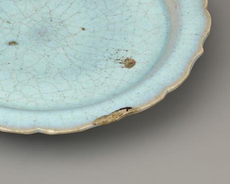 北宋时期,汝窑、官窑、钧窑等名窑开创的青瓷(尤其是天青釉)审美体系,成为后世效仿的典范。金代统治的中原地区(如河南、陕西等地)正是宋代名窑的核心分布区,窑工群体未因政权更迭而消失,反而将宋代制瓷技艺(如天青釉配方、支烧工艺)延续至金元时期,天青釉花口洗便是这种技术传承的直接体现。金代中后期与元代均重视手工业发展。金世宗时期(1161—1189 年)推行 “与民休息” 政策,鼓励工匠生产;元代则设立 “浮梁磁局”(1278 年)管理景德镇制瓷业,同时对北方窑场采取相对宽松的管理,使得天青釉等传统品种得以持续生产。