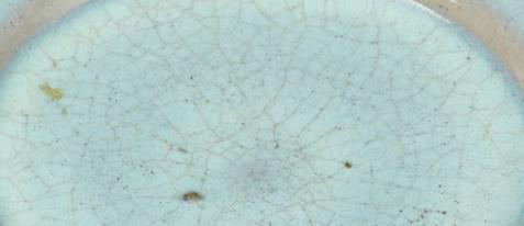 7 1/4英寸(18.4厘米)釉色以天青色为主,色泽温润,釉质凝厚滋润,有的呈现出乳浊的失透质感,有的则较为透亮。部分器物釉面有开片现象,开片纹路细密或疏朗,如冰裂纹般自然美观。有的还会出现窑变彩斑,在天青色的底釉上,偶有绚丽的玫瑰紫斑等,斑纹与底釉融合自然、流畅,增添了器物的艺术魅力。