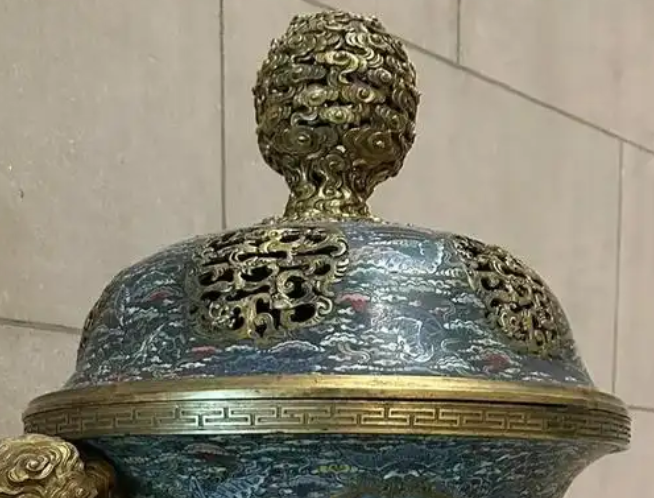 装饰细节:以掐丝工艺在铜胎上勾勒出各种精美的图案轮廓,再填充不同颜色的珐琅釉料烧制而成。纹饰丰富多样,可能包括传统的龙纹、云纹、花卉纹等。龙纹矫健威武,张牙舞爪,展现出皇家的威严;云纹线条流畅,富有动感;花卉纹细腻逼真,形态优美。珐琅釉料色彩鲜艳丰富,常见有蓝、绿、红、黄等色调,相互映衬,使得香炉表面绚丽多彩。掐丝线条粗细均匀,工整细腻,体现了工匠高超的技艺水平。器物表面光泽亮丽,历经岁月仍散发着独特的魅力。