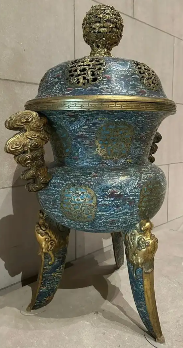 尺寸规格:暂未公开具体尺寸,从常见的清代掐丝珐琅香炉推测,高度可能在 20 - 40 厘米,口径可能在 15 - 30 厘米,但实际尺寸需进一步考证。