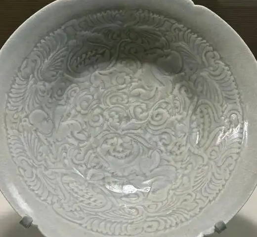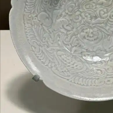 装饰细节:采用青白釉,釉色温润如玉,呈现出淡雅的青白色调,釉面光泽柔和,有一定的透明度。盘内采用印花或刻花工艺,装饰有精美的纹饰,可能是花卉纹、卷草纹、龙凤纹等传统图案 ,纹饰线条流畅,布局合理,立体感较强,展现出南宋时期高超的制瓷装饰技艺。尽管历经岁月,仍能看出其工艺的精湛和纹饰的精美。