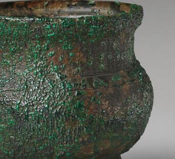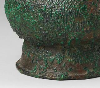汉代随着 “罢黜百家,独尊儒术” 的确立,宗法礼制逐渐世俗化,青铜器从祭祀重器转向日常用器(如酒樽、灯、炉等)。这件饕餮纹青铜酒尊虽保留了饕餮纹这一古老元素,但已不再是主体纹饰,而是作为铺首衔环的附属装饰,其 “威慑” 功能弱化,更多是对传统工艺的承袭与符号化借用。