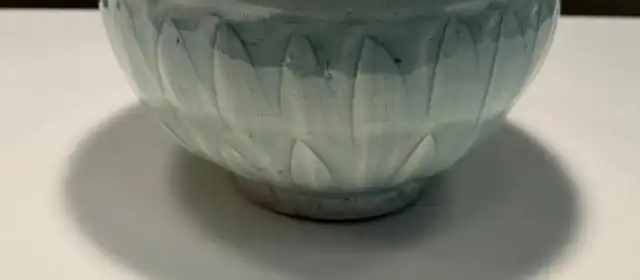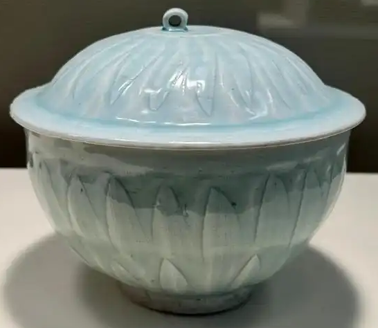 装饰细节:采用影青釉,釉色淡雅,呈现出柔和的浅蓝色调,如湖水般清澈,给人温润如玉的质感。碗身和碗盖上均刻有莲瓣纹,刀法流畅,莲瓣线条自然优美,层次分明。莲瓣纹的刻画不仅增加了器物的美感,还蕴含着佛教文化中清净、吉祥的寓意。釉面光泽柔和,质感细腻,虽历经岁月,仍保留着南宋湖田窑瓷器的独特韵味。