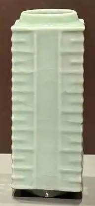 整体造型:瓶身模仿古代玉琮的形制,呈内圆外方状,直口,短颈,直腹,圈足。瓶体高大规整,线条简洁刚直,给人一种端庄稳重、古朴典雅的感觉。