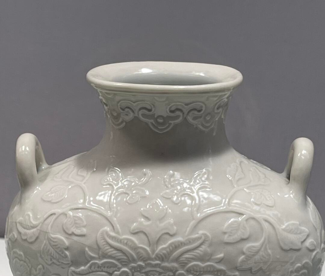 清代白釉刻花双耳瓷瓶