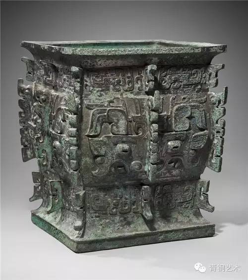 装饰细节:器身四面装饰有精美的兽面纹,兽面纹线条粗犷有力,双目圆睁,具有威严感,是西周早期青铜器常见的装饰题材。在器身的转角和棱线处,设有高耸的扉棱,不仅增强了器物的立体感,还起到了装饰作用。扉棱造型独特,线条流畅,与器身纹饰相互映衬。方彝的底部或内壁刻有铭文,铭文内容可能涉及当时的祭祀、赏赐、战争等重要事件,是研究西周历史的第一手资料,铭文的字体为典型的西周早期金文,笔画刚劲有力,结构严谨。器物表面因岁月侵蚀,布满铜锈,呈现出古朴的绿色和褐色锈迹,增添了历史的沧桑感。