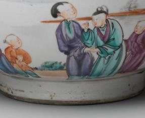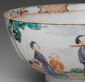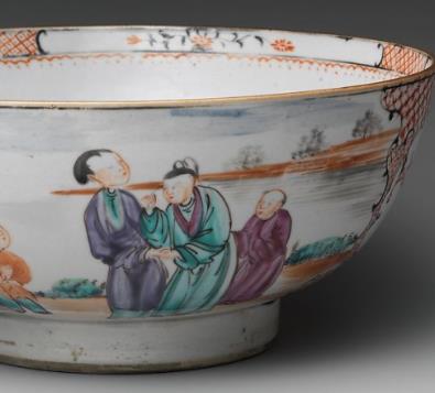 乾隆朝的制瓷业呈现出 “集历代之大成” 的特点:既继承了唐宋的古朴、明清的精细,又融入了异域文化元素。粉彩人物故事大碗正是这种时代特征的缩影 —— 它以成熟的粉彩工艺为基础,用丰富的人物故事题材展现多元文化,以华丽的装饰风格呼应盛世的奢华,同时也暗含了皇室对权力、文化与社会秩序的掌控。