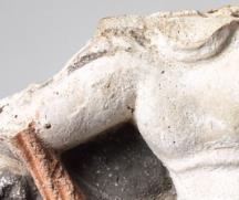 尺寸:6 1/4 x 4英寸(15.9 x 10.2厘米)面容通常丰满而文静,散发出端庄飘逸的气息,展现了唐代崇尚健康美的审美取向。天造像多呈现出轻盈飘逸的姿态,身体曲线优美,常作飞翔状。如龙门石窟的飞天造像,整体构型遵循人物飞行时的身体动态,呈现出左侧高右侧低的姿态,腰部倾斜,左臂上的飘带向上飞扬,双脚弯曲,踏在云朵之上,下方则有卷云支撑,营造出一种轻盈自在、仿佛在空中翩翩起舞的感觉。