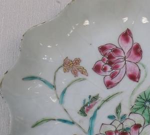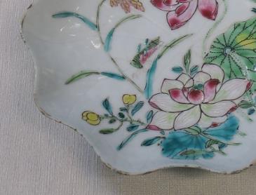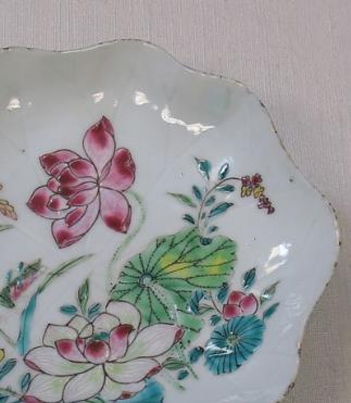 粉彩莲花纹荷叶形盘