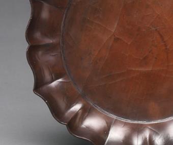 元代漆器在宋代漆器的基础上发展而来。宋代漆器以造型取胜,多光素无华,工艺精湛,元代继承了宋代的一些制作工艺和审美理念,单色素髹的莲瓣盘就是这种传承的体现。同时,元代漆器工艺也有所创新和发展,戗金、雕漆等工艺达到了很高的水平,虽然褐漆素面莲瓣盘不属于复杂的装饰工艺器物,但它反映了元代漆器工艺的多样性和基础性。