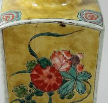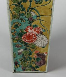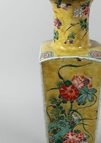 黄地粉彩花卉纹方瓶