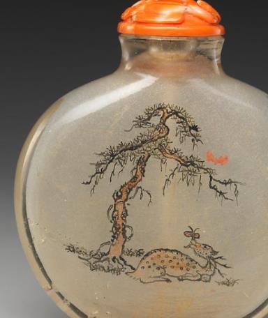 水晶内画诗文松鹿纹鼻烟壶