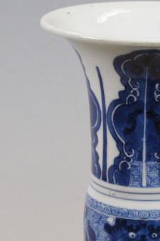 花觚始于元代,主要流行于明嘉靖、万历至清乾隆时期,早期除陈设用外,民间多用于插花、布置厅堂。康熙时期,瓷器烧造技术不断提高,花觚的造型更加丰富,青花兽面蕉叶纹花觚就是这一时期的典型品种之一,它既保留了传统花觚的造型特点,又在纹饰和工艺上有所创新,体现了康熙时期高超的制瓷工艺和独特的审美风格。